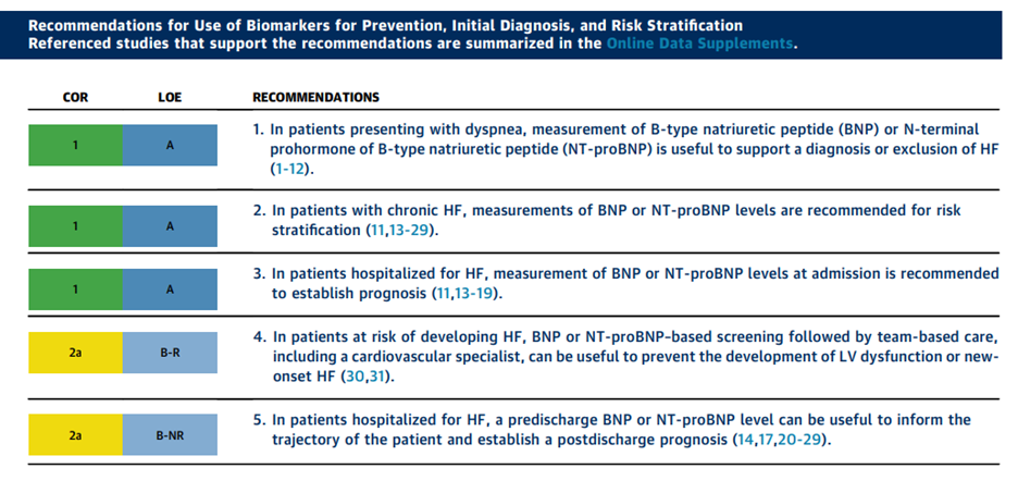 - Chow SL, Maisel AS, Anand I, et al. Role of Biomarkers for the Prevention, Assessment, and Management of Heart Failure: A Scientific Statement From the American Heart Association. Circulation. 2017/05/30 2017;135(22):e1054-e1091. doi:10.1161/CIR.0000000000000490