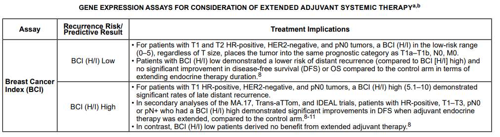 5. For individuals who have been diagnosed with T1-T3, HR-positive, HER2-negative breast cancer, use of the Breast Cancer Index (BCI) test to determine the benefit of extended adjuvant endocrine therapy is considered MEDCIALLY NECESSARY.